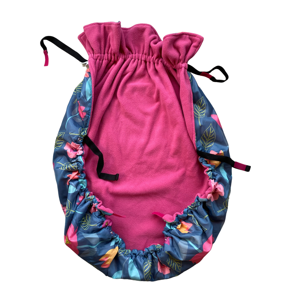 The beautiful multi-colour floral cosy is made from a soft waterproof outer fabric and lined with quality, pink fleece, providing both comfort and style. It's easy to put on and take off, and it fits most standard wheelchair sizes.