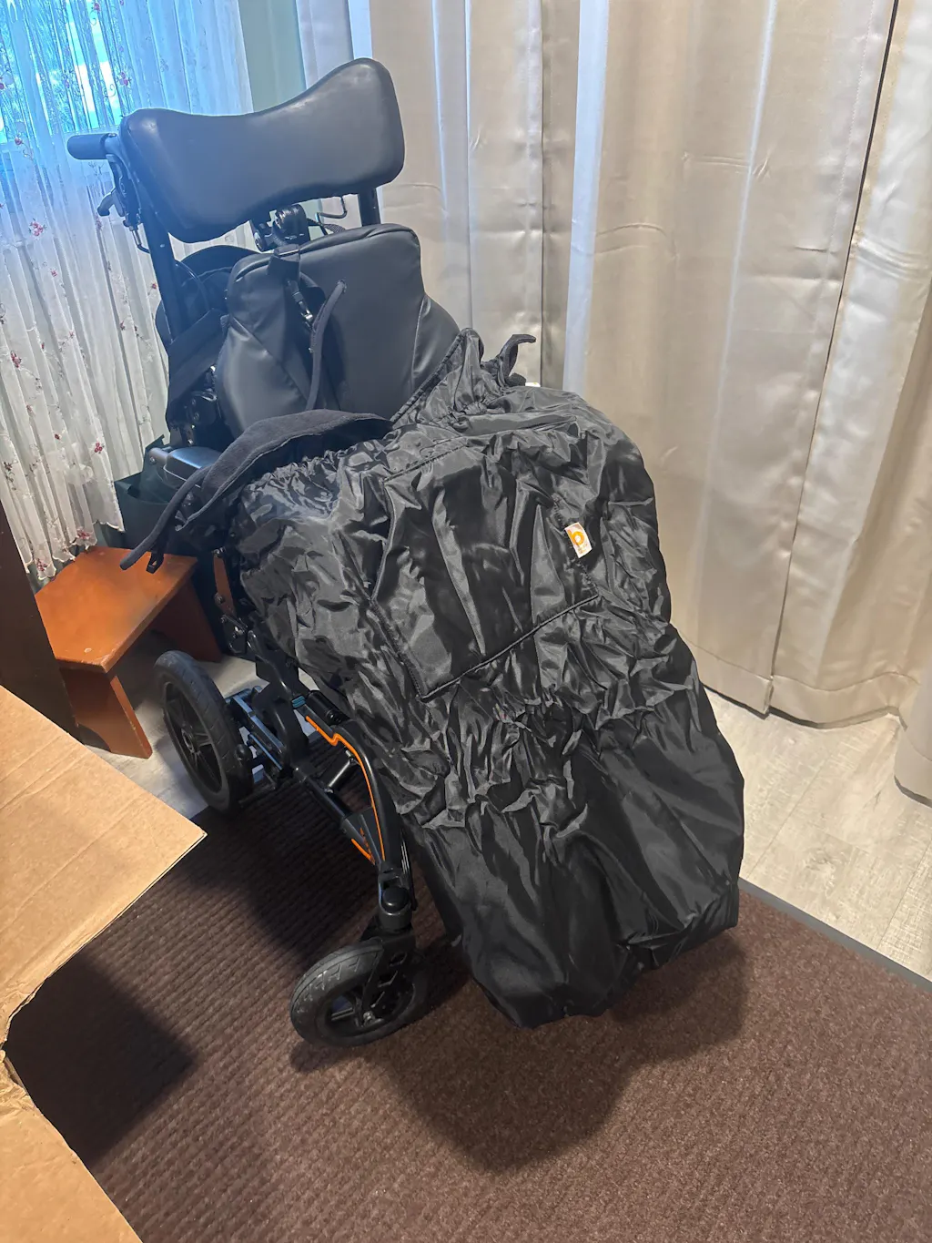 - This cover has been designed with the wheelchair user’s needs in mind: comforting without being too restrictive for sensory issues, can withstand kicking, can be folded down to access PEGs / administer medication, contrast Velcro tabs to help with visual impairment